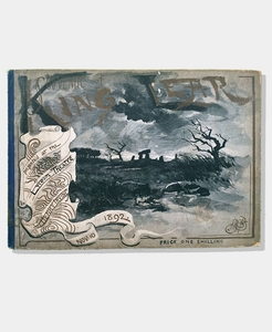 This beautiful, rare souvenir theatre programme presents King Lear on the 10th November 1892 produced by Henry Irving. The hard board cover has protected the internal pages which contain 13 stunning plates painted by both J. Bernard Partridge and the highly revered scene painter, Henry Hawes Craven Green (otherwise known as Hawes Craven). The plates portray scenes throughout the play. The cover painting depicting a stormy scene of Stonehenge has J. Bernard Partridge’s initials in bottom right corner. The eminent cast included the renowned couple, Henry Irving and Ellen Terry.