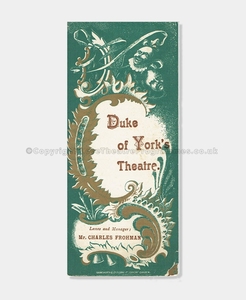 The front cover has a very ornate illustration framing the print ‘Duke of York’s Theatre’ and also informs us of the lessee and manager below Mr. Charles Frohman. Mr Charles Frohman presents Miss Marie Tempest in this production of The Marriage of Kitty, a play in 3 acts (from the French of Madame Fred De Gresac and Francis De Croisset) by Cosmo Gordon Lennox.