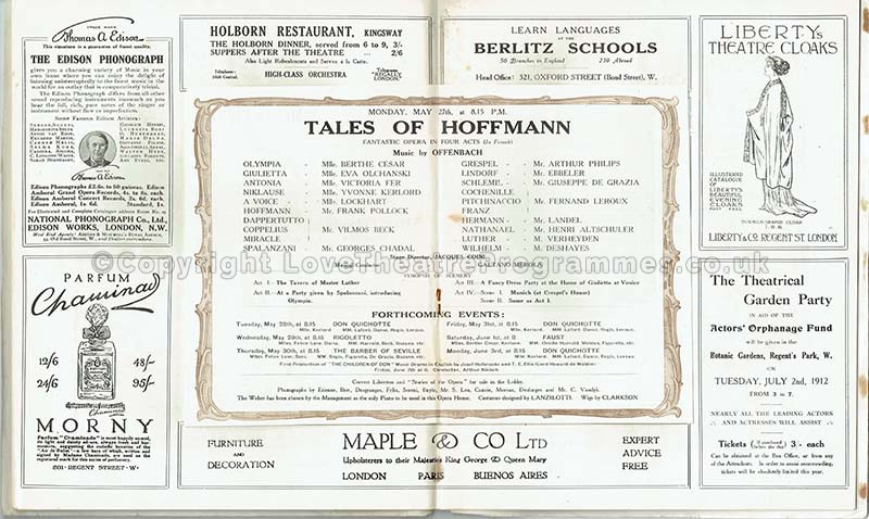 1912 – London Opera House – The Tales of Hoffman