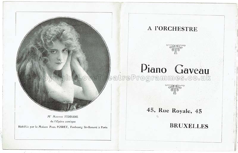 Principal Performers : Mme. Marthe Ferrare, M.Seylis