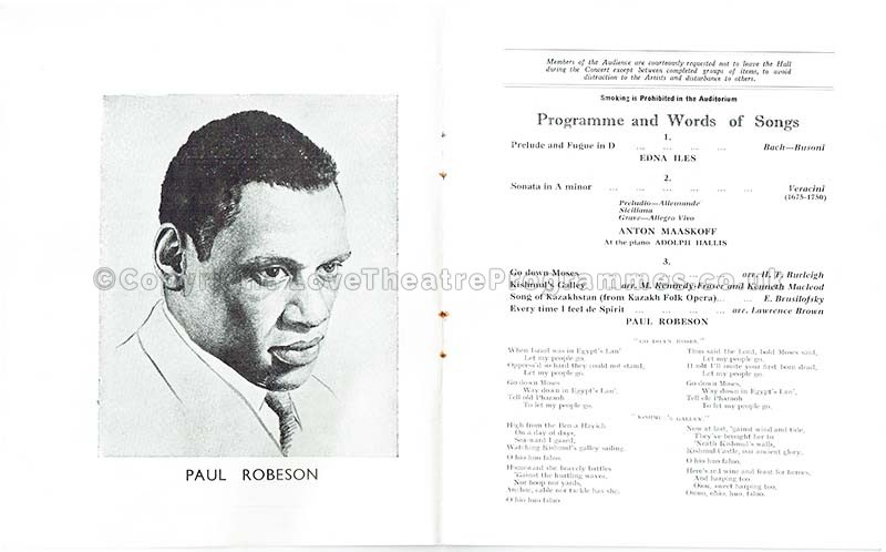 With its characteristic cover artwork, this wonderful Royal Albert Hall programme presents the late, inimitable Paul Robeson. This programme includes the lyrics of the songs he sang at this special performance.