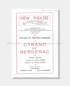 This New Theatre programme presents the Old Vic Company performing Cyrano De Bergerac, a French play written by Edmond Rostand originally in verse and was translated by Brian Hooker. The cast list is a who’s who of eminent actors including Ralph Richardson, Alec Guinness.