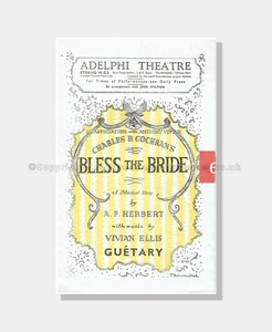 This pretty theatre programme presents the romantic musical, Bless the Bride; a popular show which ran for three years. The musical included This is my Lovely Day sung by Lizbeth Webb and Georges Guétary which became a hugely popular song.