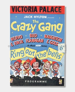 The Crazy Gang were six-man variety comedy troupe. In their pairs they were known as ‘Flanagan and Allen’, ‘Nervo and Knox’ and ‘Naughton and Gold’. They were a singing, dancing, acrobatic, comic acting group. The creation of the group happened gradually in 1931, during performances called ‘The Crazy Week’. Nervo and Knox, Naughton and Gold where pulled together with other double acts to create the variety show. Later Flanagan and Allen were invited to join the show. They were not known officially as The Crazy Gang until 1937. The Crazy Gang had an extremely successful stage career and due to their popularity they later on went to make such films as O-Kay For Sound (1937) and Life’s a circus (1958).